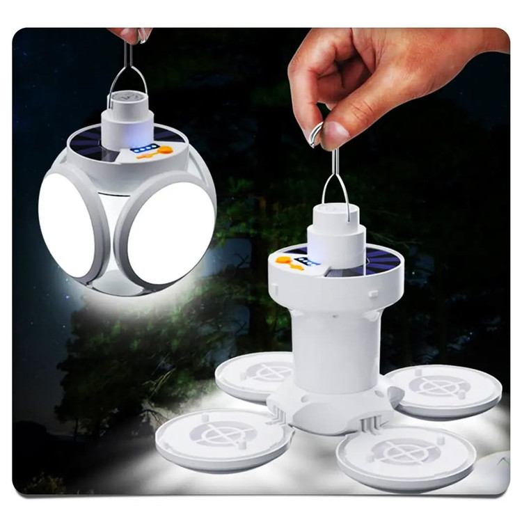 ❌️یک چراغ با کیفیت با 5 حالت نوردهی میباشد که از یک لامپ در پایین و 4 عدد لامپ کناری تاشو تشکیل شده است.